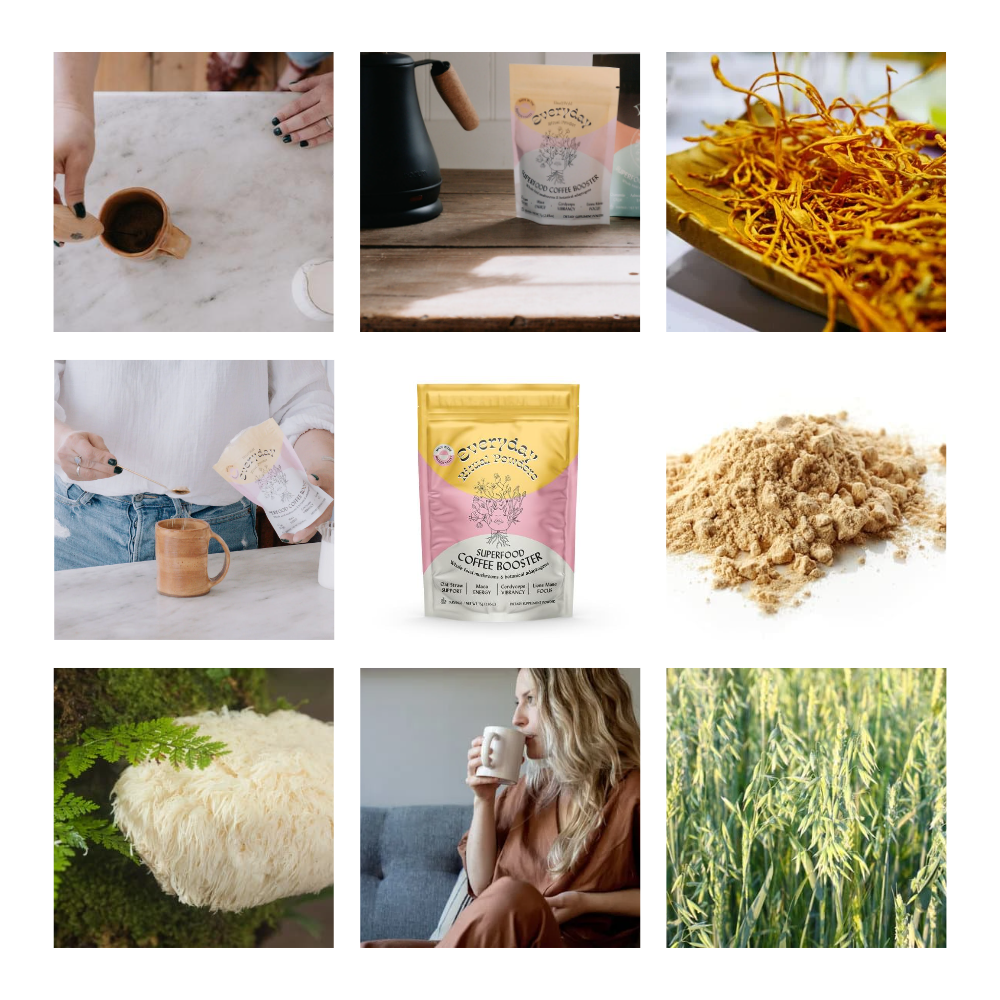 Elevate your coffee ritual with our Everyday Coffee Booster. This blend of mushrooms and botanicals is designed to complement your coffee, adding a smooth, balanced flavor to your daily brew. It's a simple way to bring a little extra something to your morning routine. Perfect for mixing into your coffee, smoothies, or oatmeal to enhance your daily routine.