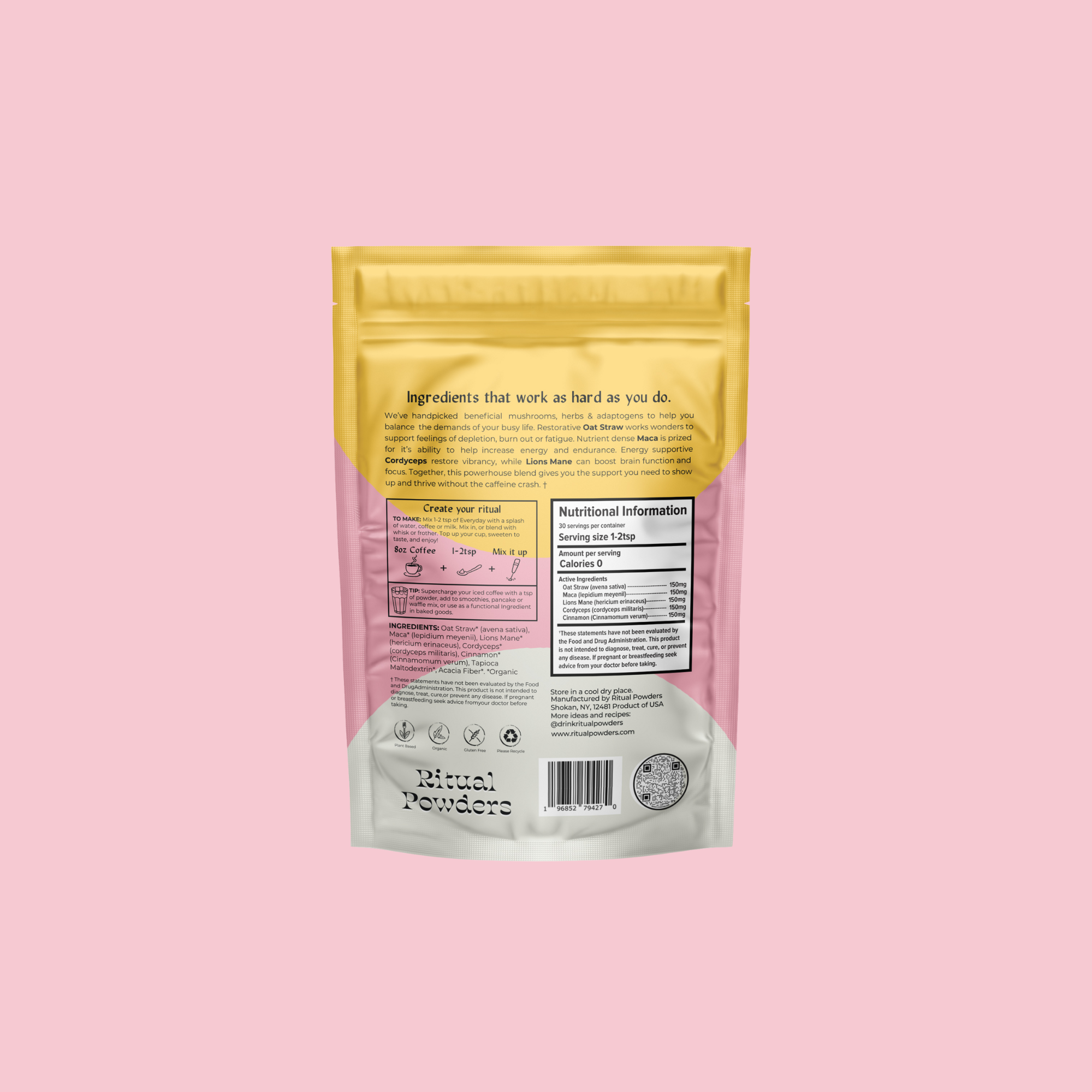 This fungi may support energy and overall performance. It's also believed to assist with nervous system support and general immune health. Cordyceps can also help your body metabolize caffeine, making it the perfect addition to your morning cup of joe.