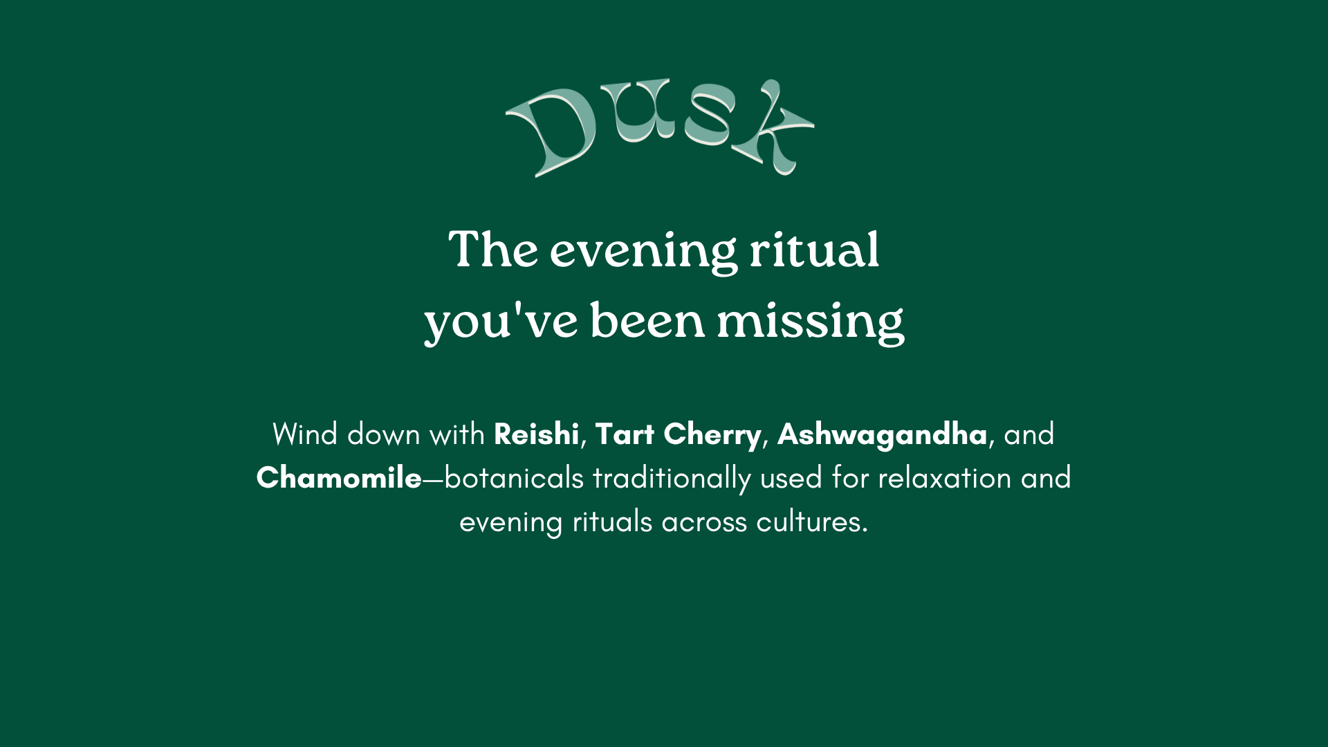 🌙 Evening — 1-2 tsp Dusk in warm milk before bed